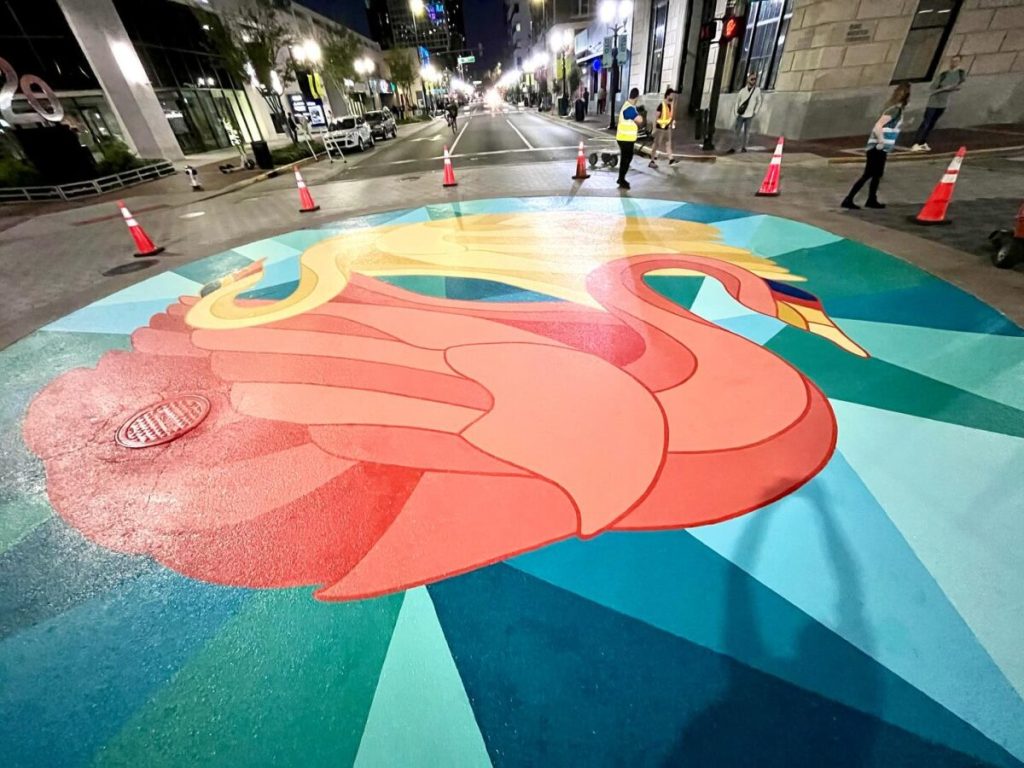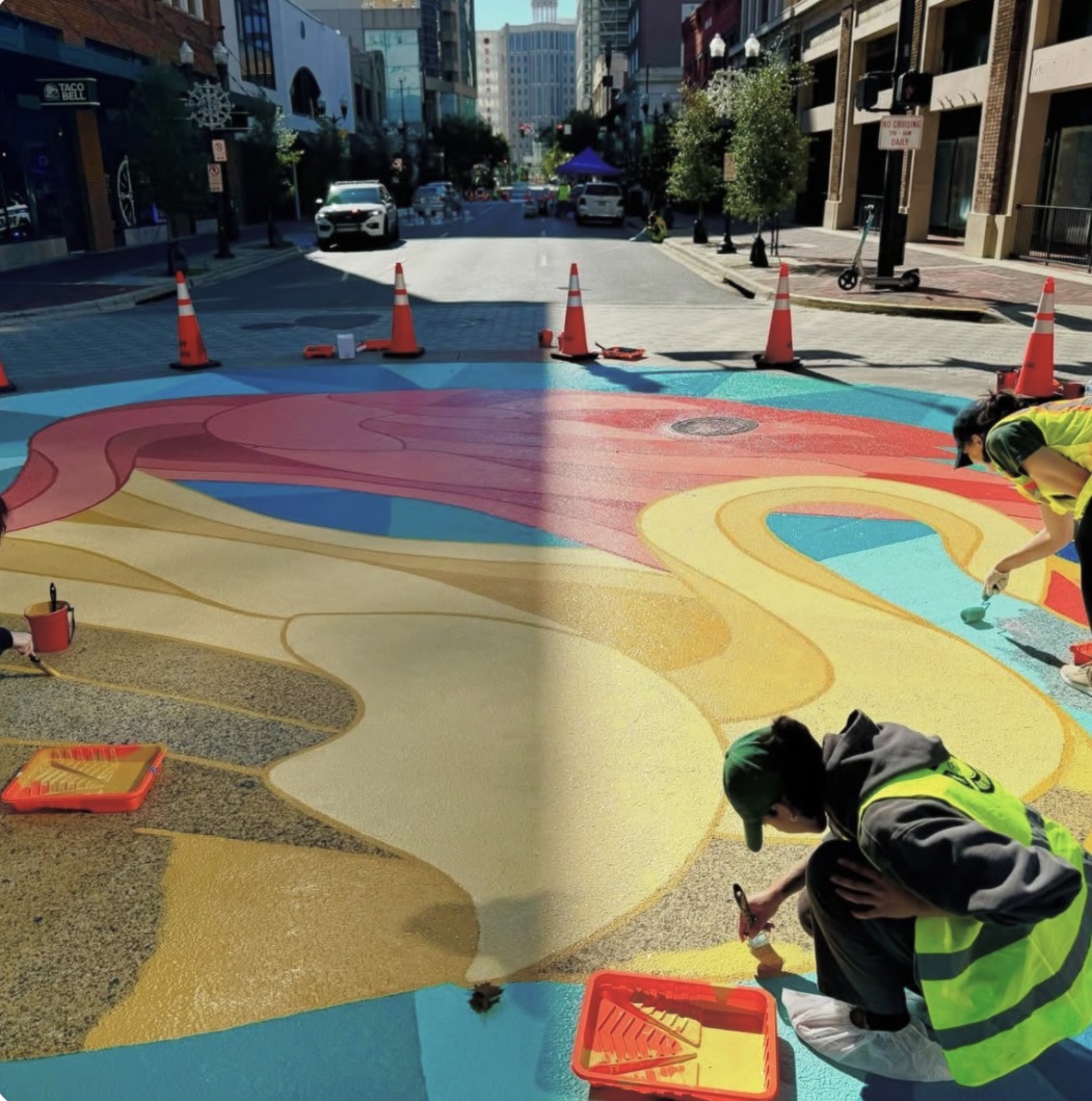 Client: Downtown Orlando Swan Mural Project Year: 2024 Duration: 1 Day (12 hours) Project: Swan Mural Installation / Public Art Location: Downtown Orlando, FL Role: Scenic Artist Team Size: 12 Helped execute a large-scale swan mural installation in downtown Orlando as part of a fast-paced public art project. Focused on scenic painting and surface preparation to ensure the mural was completed within a single day while maintaining strong visual consistency and durability across all sections. Solved on-site challenges by adapting quickly to environmental conditions, coordinating efficiently with a team of twelve, and ensuring colors and finishes remained cohesive throughout the installation. Worked in a highly collaborative, time-sensitive setting, staying detail-focused, flexible, and reliable to help bring the final mural to completion within the 8-hour production window.